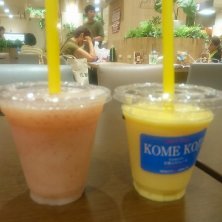 娘は食わず嫌い 次男は結構、挑戦好き ホブソンズのライチソーダ、ライチの味が分からないというので頼んでみる事に 「うへぇ…ハズレ。」 ライチソーダ×柚子シャーベットでしたw
