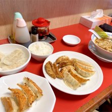 2026年4月13日 ランチ 八王子ラーメン(小盛り)シェア 半ライス(2口だけ) 揚げ餃子1個 水餃子4個 焼き餃子5個 タンパク質 おおよそ30g以上