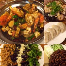 中華街外れの東北人家という店へ。 よくみると店内は中国人の方ばかり、メニューには犬鍋や羊料理の数々…さすがに犬鍋は頼まなかったけれど、4人で1?皿、どれも美味しくて沢山食べて飲んで、お会計の安さにびっくり〜。大好きななすのたたき?のようなものもあって大満足¨̮♡︎