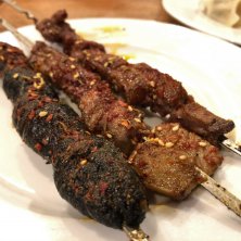 羊串は濃味でスパイシー!これで1本100円では頼まないわけにはいかない!そして蚕串も…