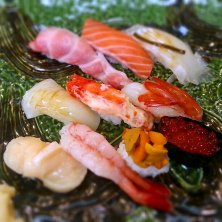 都にぎり 鮪、時鮭(サーモン)、たんたか昆布〆、真いか、甘海老、牡丹海老、帆立、いくら、生うに、あぶら蟹 GINZAの北海道展にて、釧路のくしろ都寿司さんの出店。