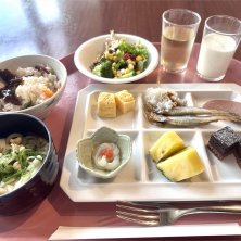 モーニングビュッフェ 夏休み3日目🌻岡山県の南端のホテルにて。 モーニングビュッフェは洋食派な私ですが今回はあまりパンに魅力を感じなかったのでほぼ和食です🍚タコ飯と佃煮(左上)が特に美味しかった! これからおもちゃ王国に行きます🧸🎈私も子どもの時に1回しか行ったことないから楽しみ!!