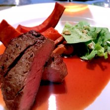 USビーフテンダーロインのロースト ポルチーニ茸のジュ 南瓜 ロケットのサラダ添え