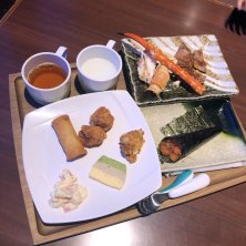 私の夜ご飯 ミル友さんに教えてもらって予約しておいたビュッフェレストランで晩ご飯。 カニ食べ放題なのがすごく嬉しい〜。 蒸したカニ、ステーキ、お刺身、鮭いくら手巻き寿司、冷製明太子パスタ、ザンギ、真鯛のカルパッチョ、グリーンピースソースの茶碗蒸し。 甲殻類、というか魚介類が大好きなので、カニは一杯食べたんじゃないかっていうくらいおかわりしました。カニ酢やタルタルなど味付けを変えてw