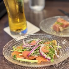 毎度お馴染みキリンシティプラス(* ̄▽ ̄) 「春香うどと自家製鶏ハムの白酢味噌和え」と 「姫にんにくのスパイスフリット」を食べる 思えばキリンシティにハマったのは自家製鶏ハムを食べてからだったなと懐かしむ。 にんにくはもうちょっと火を通して欲しい物もあったけれど、美味しかったので次回行く機会があれば 「春採りキャベツのグリル アンチョビオイルがけ」と共に注文しよう♪