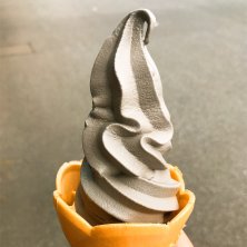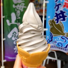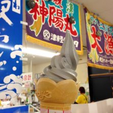 いかで有名な青森県鰺ケ沢にて。 イカスミソフト!
