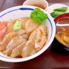 ヒラメのヅケ丼をオーダー、待つ事数分で着丼。 平目の漬けに平目のあら汁、きゅうりの漬物と至ってシンプルなルックス。 まずは平目の漬けを一切れ。 コリコリ感は若干希薄だが、しっとりと柔らかな身に纏われた醤油味と平目の甘さが絶品でうまい。 二切目はご飯と一緒に頬張る。 白米のうまさと漬けの旨味の一体感で、これがエンドレスモード。 あら汁には粒々の卵がたっぷり、短尺切りの豆腐と、あら汁とは思えない食感と出汁感で、これだけでうまい逸品。 丼とあら汁のルーティンで、気がつくと完飲完食。 満足の品々。