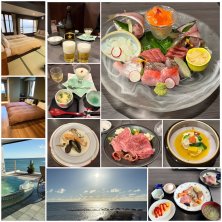 6/27、28と誕生日旅行で南房総へ行ってきました(^^)だいぶ投稿遅れましたが、これからupしていきます! 宿を決める時の決め手になったお部屋も素敵で、 テラスにあった露天風呂も虹や夕陽、朝日など色んな景色を海を眺めながら入れて最高でした!ずっと入っていたかったー♡ まず夕食の豪華なお肉少食コースから⭐