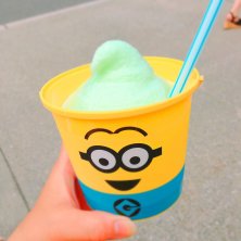 【ソフローズン ミニオンのバケツ付】 『ミニオン・ウォーター・サプライズ・パレード』を見た後、ワゴン車で販売されてるのを目にして、思わず購入。ミニオン・パーク内では、マンゴー味とソーダ味があったけど、ここはメロン味で、それに惹かれたのでした。 バケツは、何に使おうか?