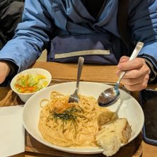 土曜日の昼おやつ夕ごはんとか🍴 🍚しらすのせごはん ✨笹かまぼこ 🥚ゆで卵 ✨ダークモカチップフラペチーノ 🥢とんかつ定食 🍻ヨーグルト&ビールとか わたくしは朝ごはんスキップ🍃 昼ごはんを家族でサッといただいたら、空港へ✈️ 久々の成田は、やはり以前のような活気もなく人もまばら。ショップも閉まってたり。 たまたまオットの同僚インド人家族が来日するとのことで、会って記念写真😊 その後、家族で晩ごはんをしたあとは高1むすめを見送り👋数週間のMalta滞在へ✨