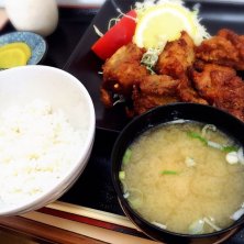 知床地鶏のザンギ定食 いつも盛りの良い知床食堂さん。今日はご飯を3分の1にしてもらいました。それにしてもザンギ一個の大きさがデカイo(>◡<)o3個食べて2個は他の人に食べてもらいました。それでも十分満足♡鶏肉にしっかり下味が付いていてご飯が進みます。知床地鶏はジューシー、柔らか〜〜いo(>◡<)o 盛り盛りのザンギ定食♡ヽ(*^∇^*)ノ 美味しかったです…ご馳走様でした。