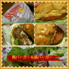 熊バーガーと鹿バーガーを購入。 鹿は食べやすいけど、熊はかなり癖があってスパイシー!