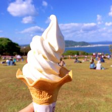 バニラソフトクリーム♡ 見頃を迎えたコスモスを見に、船で渡って能古島へ(*´꒳`*) コスモスと海を眺めながらバニラソフトを頂きまーす♩……うっ、寒いっ꒰꒪દ꒪⌯꒱ 美味しかったけど冷えました(笑)