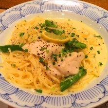 お昼ご飯に食べたクリームパスタ(*゚ー゚) レモン味で意外にあっさり美味しかった♡