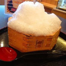 7月28日(木) 8:15〜 NHK「あさイチ」内の『愛(め)でたいnippon』のコーナーで、大垣名物 水まんじゅうが紹介される…と知って、むしょうに食べたくなり、餅惣さんへ行ってきました❤︎ ⚫️『水まん氷』 🔵『半分、青い。水まんじゅう -ソラ-』 🟢『半分、蒼い。水まんじゅう -爽-』 ⚫️ 『水まん氷』水まんじゅう×かき氷 大垣名産の枡(八角枡)の中に、水まんじゅうが3つ、その上にかき氷。白蜜。ほんのりと甘くて、昔懐かしいかき氷でした。 ↓続く
