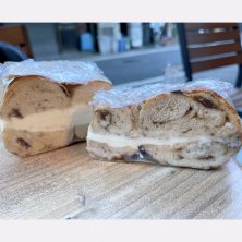 移転先、通勤途中で行けるから嬉しい🙌✨ ⌘クリームチーズ(ブルーベリー) ⌘バター(シナモンレーズン) ただ…ベーグルを入れる取手のない紙袋10円 小分けで買うと、買う毎に10円加算😳 それでも行くけどね 美味しいから❤️ 年始平日は1/14〜