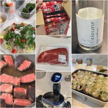̄ ̄ ̄ ̄ ̄ ̄ ̄ ̄ ̄ ̄ ̄ ꕤ生蛸と真鯛のカルパッチョ ꕤUSプライムビーフステーキ ꕤたこ焼き(たこ、キムチ、餅) ꕤ🍾/asatsuyu 白ワイン、衝撃的な美味しさ 友人が持ってきてくれて いい出会い│߹ㅁ߹)♥︎ 銀だこのたこ焼き粉が 美味しいと聞いて買ったら ほんとおいしかった😍 USプライムビーフは 58°3h→グリルで最高の仕上がり⸜♥︎⸝ 𓅫𓂃𖥧𖥧  ̄ ̄ ̄ ̄ ̄ ̄ ̄ ̄ ̄ ̄ ̄