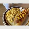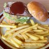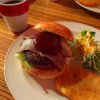 ベーコンとトマトスライスのサラダ 軽く火の通ったスライストマトの上にカリッカリのベーコンとフライドオニオンがたっぷりのっています。ザワークラウトの酸味が効いていて最高に美味しい!