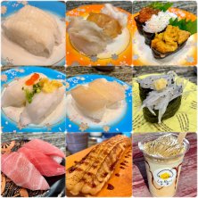 鯨 えんがわ 白子(上の三皿) 本平目のえんがわ 本鮪の赤身'(左の二皿) 貝三種盛り(右の一皿) 那珂湊は森田水産の回転寿司。新鮮厚切りの寿司だね🍣でいつも満足。二種のえんがわはそれぞれに歯応え抜群て、それぞれの味わい。白子はとてもクリーミーで、鮪は赤身の旨味にあふれています。鯨はさっぱりとして、貝は超コリコリ。 今回も家族みんなで堪能してきました😋食事の後は魚を購入して、さあ帰宅。