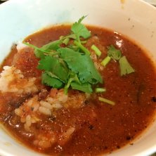 ラッサム茶漬け(^o^) 〆は南インドの辛口スープにライスを入れたリゾット的な1品、辛さ強めですがスッキリ爽やかでお酒の後にバッチリです(^_^)v