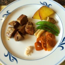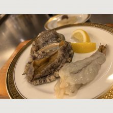 仕事は、忙しかったけど、 鮑とエビと牛。 美味しかった。 ①