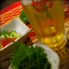 奄美大島って、鹿児島ですよねσ(^_^;)? 先付が海ぶどう、ビールはオリオン... これって、沖縄ですよね~~(^^;