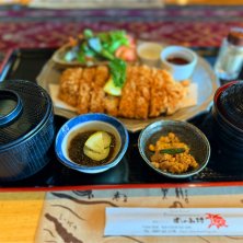 めっちゃボケたけど昼から豪華なトンカツ定食 めっちゃ美味しいです