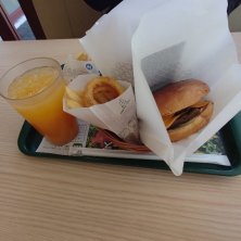 旦那さんと久しぶりのモスバーガー🍔 モスチーズバーガー・オニオン&ポテト&モスチキン&オレンジジュース🥤