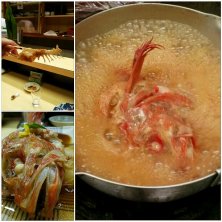 キンキの煮付け♪ 注文してから40分かかりますが、 身がプリンプリンしてて、絶品です。 右は、完成5秒前の写真です(^^)v