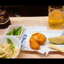 前から気になっていた門司港の老舗のカクウチ 二人で、ビール大瓶二本、ワンカップ焼酎、ウイスキー水割りで合計¥1200ちょっと☆ 枝豆、鳥フライ、豚シャブサラダ、冷奴の一品は全てサービスでした