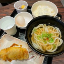 Breakfast 21/10/5 Tue 親父の製麺所 朝定食 @390 鶏天 @180