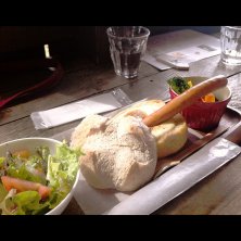 チーズフォンデュセット(*^^*) 天然酵母のパンがめちゃめちゃ美味しい!ふわふわだけど弾力もあって、味もしっかりしてる♡フォンデュチーズとの相性もバッチリ♪ウィンナーも美味しいし大満足でした(≧∇≦)