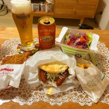 モスバーガーパーティーナイト🥳 ・【期間限定】メンチカツチーズバーガー レギュラーセット オニポテ、ブレンドコーヒー ・モスチキン ・サラダ 和風ドレッシング 明日はお休み✨ 夜を楽しもう😍💕