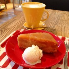 北欧風のおしゃれなカフェにて♡ 店内に入った瞬間シナモンの良いかおり〜♪♪シナモンのケーキを注文しました! 大きなカップいっぱいに入ったカフェラテが嬉しかったです^_^ •信州りんごのシナモンケーキ