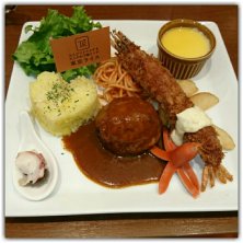 謳い文句の通り、思わずウキウキしちゃうお子様ランチ♡ 「誉」っていうシーフードランチは、海老カツやらズワイガニやら色々あって、美味しいしボリューム満点(≧∇≦) 白く見えるご飯は、実はチキンライスっていうのも面白かった♪♪ 全メニュー制覇したい(^皿^)