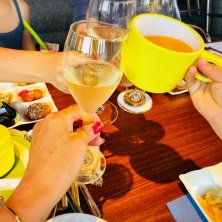 下の娘と孫2人と私たち夫婦で! 車で🚙10分のところでも リゾート気分 乾杯だけシャンパンで! このグラスだけで酔いが回りました😆 ここのブュッフェ 美味しいのはわかってたけど やはり実に美味しい!! ガーデンプールから京阪電車が見えて 一瞬現実に戻るけど 贅沢な時間を過ごせました♪