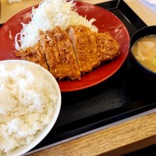 出張先のちょい遅く昼ごはん かつ丼 サラダ 豚汁セット 今日は相模原に来てます❗️ 休憩後足立区でもう一件仕事が入った∑(゚Д゚)