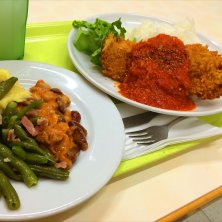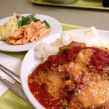 チキンのチーズとトマトソースかけにサラダ3種類! 春休み最後の営業でした。