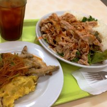 鯵フライのタルタルソースかけ 学食初め!限定20食の魚定食にありつけました