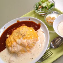 半熟ふわとろオムライス オムハヤシソースと本日のホワイトソースのハーフ&ハーフ