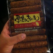 美味しかったので追加購入シリーズ。 "厚焼きおいも" かりんとうの様な麩菓子の様なサクサクな食感と程良い甘さのお菓子。 このボリュームで9本も入って105円とお値打ち!5袋購入。