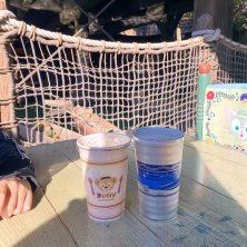 ファンタジースプリングスを満喫した後は エントリーで当選した《ドリームス・テイク・フライト✈️》〜❤️🩷🧡💛✨ 面白かった😍 そして トランジットスチーマーラインで戻ろうとしたらしばし運休中だったので再開するまでまた休憩🍺 ダッフィーのカップ可愛い🩷撮り忘れたけどコースターもついてきた♡
