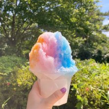 今日も 🌈レインボー🌈かき氷🍧❤️🧡💛💚💙💜✨ 今日はお昼ご飯🥐🥖買って来そびれちゃって…屋台小一時間並んでポテトとか🍟唐揚げとか購入‼️4.000円もして笑 園内広くて広くてレストランも遠くて💦 リサーチ不足でした… 食べた後はアスレチック〜🎵 冒険コースにママとお兄ちゃんはチャレンジしたよん😊✨ 暑い中ドロッドロに汗かいて汚れたね笑 楽しかったね!