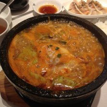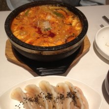 上大岡でランチ 豆乳スンドゥブとチヂミのセット 豆乳でスープがまろやかになって食べやすい。