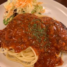 ミニハンバーグミートスパゲティー いかにも昭和な雰囲気の純喫茶に行きましたよ 今日いただいたのはミートスパゲティーにミニハンバーグとサラダが添えられたランチメニュー パスタではなくスパゲティーと呼ぶべき味に懐かしさを感じます 値段の割にボリュームが多く満足しました 昼時はスーツ姿のサラリーマンで賑わっていますので、ピーク時を外した方がすぐ席に着けると思います