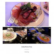 小海老のミモザサラダとか牛フィレ肉のカルパッチョとかサーモンのロールとか帆立て貝とかシャルキュトリとか魚のムースとかetc.取るのがやっとで盛り付けはこうなります(笑)ご飯が食べたくなって仔羊肉のエスニックカレーも食べました。これが美味しかった!豚肉のグリエ、牛フィレソテー、ビーフシチューもお代わりできたので今までのAmebaパーティーで一番満足(*^^*)