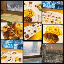 ルームサービス🍽 ハンバーグステーキ170g ポテト添え 和風たまねぎガーリックソース チキンステーキ ポテト添え パルメザンチーズのシーザーサラダ ルームサービス限定シェフ特製スイーツプレート せっかくの高層階でバスルームも素敵だから部屋で過ごしたくて🎶 去年まん防の関係で私の行く週だけが公演中止に泣く泣く諦めた舞台、今年も当選しました💓 取引では1枚15万円前後 新橋演舞場からの興奮覚めぬまま、ハンバーグ めっちゃ美味しかった お風呂も夜景見て朝日浴びて☀️enjoy