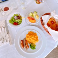 朝はルームサービスの朝食タイム😋🍴🍳🍞🍌 グレープフルーツジュース、スクランブルエッグ、ソーセージ、モーニングブレッド、グリーンサラダ、紅茶。 今日はもうしばらく食べれないからしっかり食べといた!🥰 いよいよ今日は家族親族だけの小さな結婚式😊 コロナで一切飲食は無し、対策をできる限り思考した結婚式に。 色々残念ではあるけど、思い出に残る良い一日になるといいな💒👰💍 そんなわけでこれからヘアメイク→結婚式→婚姻届提出→オッパと同居開始! と盛り沢山な一日が始まるよ〜w