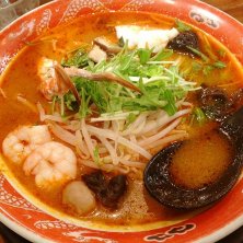 アピタで遅めのランチ。 冷たいトムヤムクン麺。 スープと具材がいまいち一体化してない気がする… 冷たい具材って味が染みないし、塩ゆでした具を後から合わせると具が塩味だけになっちゃってるかなー。 妹が食べたあんかけ焼そばは良かった。
