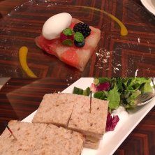 台風で出かける当てもなく暇だったので、お友達を誘ってパレスホテルでティータイム。皇居の白鳥達はどこへ行ったのかな?お堀には風で立つさざ波ばかり。 サンドイッチにはロースハムとエメンタールチーズとレタスとマヨネーズが挟んであり、ライ麦パンの風味が際立ちました。スイーツはシトラスのテリーヌと柚子シャーベット。連れはヴァローナのグアナラのテリーヌ・ド・ショコラ。なんじゃらほい